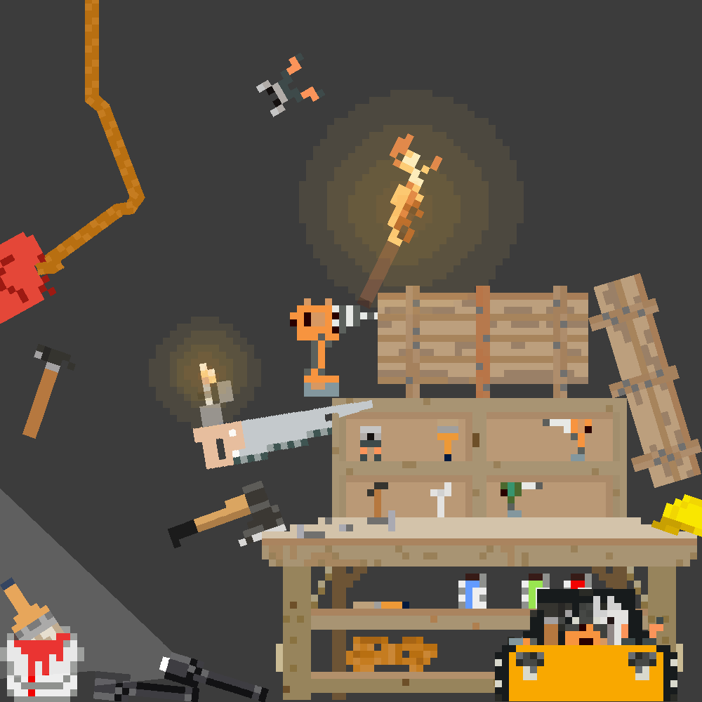 - 16x16: VFX, Combination pliers, Drill, Flashlight, Hammer, Lighter, Paint brush, Rope, Axe, Wooden torch, Wrench