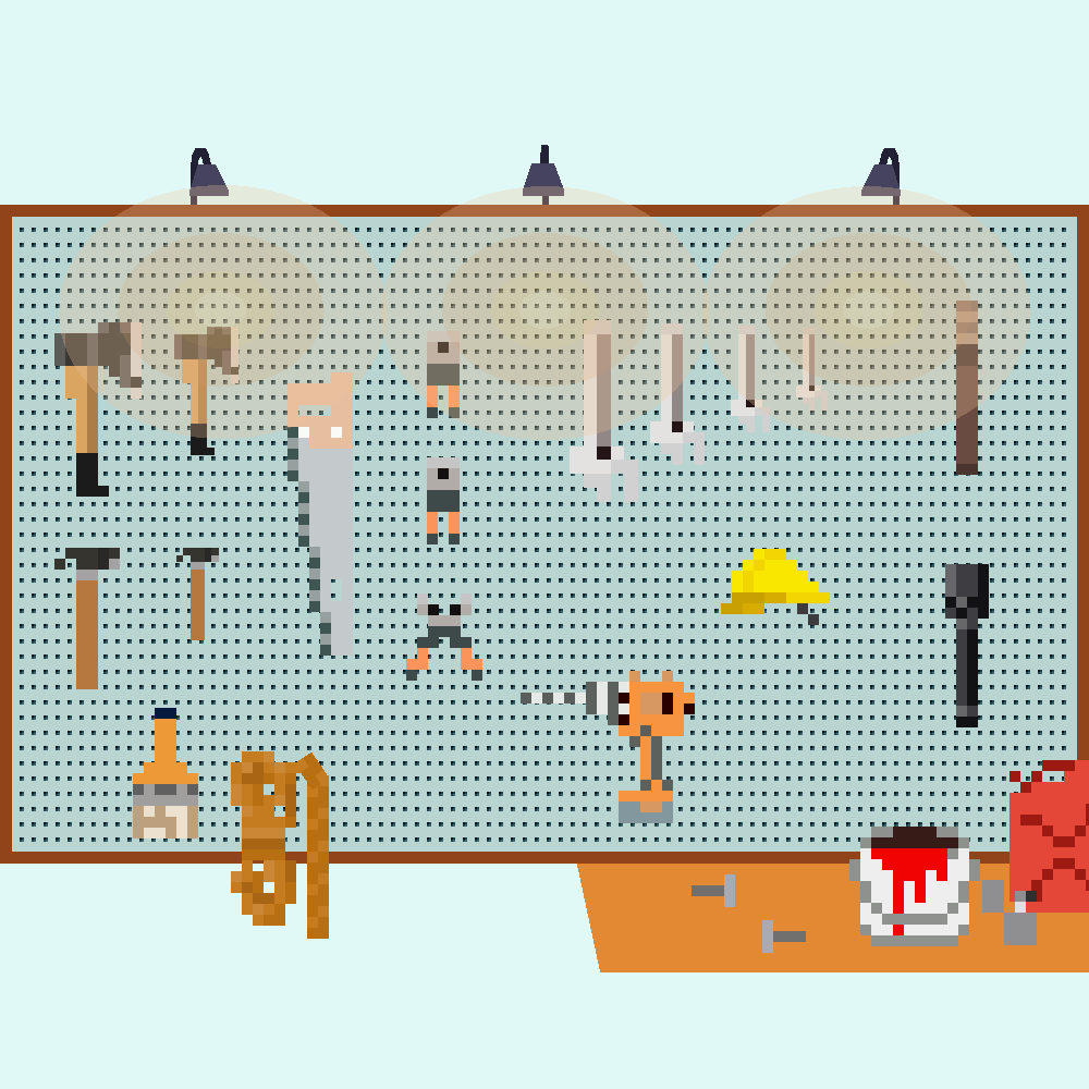 - 32x16: Handsaw, Bolts, Coiled rope, Gas canister, Hard Hat, Paint bucket